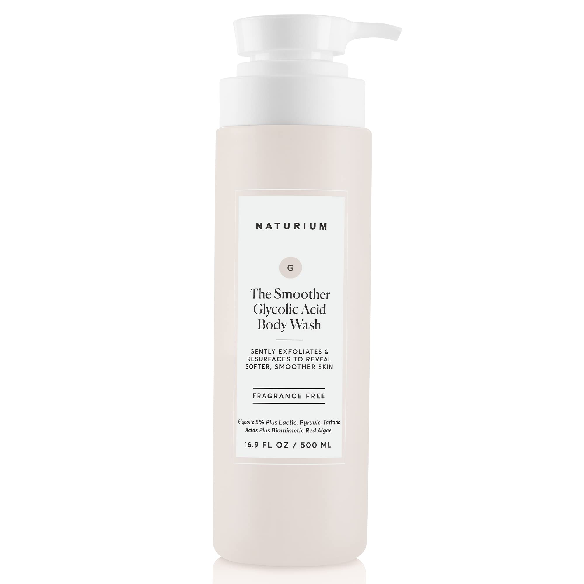 Body WashUK - USNaturium’s The Smoother Glycolic Acid Exfoliating Body Wash isย a potent, fragrance-free cleanser designed to resurface, exfoliate, and hydrate skin for a smoother, more radiant appearance. Featuring a 5% blend of glycolic, lactic, pyruvic, and tartaric acids, it effectively reduces rough, bumpy skin (like keratosis pilaris) while utilizing red algae for deep hydration.